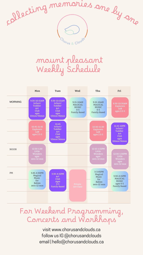 Chorus & Clouds is an early learning studio for infants, toddlers and pre-school aged children to explore the wonder in our world.