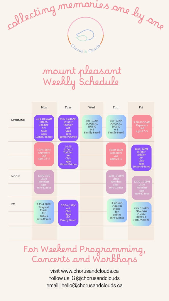 Chorus & Clouds is an early learning studio for infants, toddlers and pre-school aged children to explore the wonder in our world.